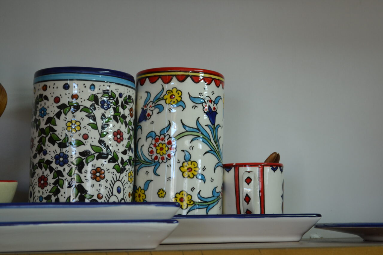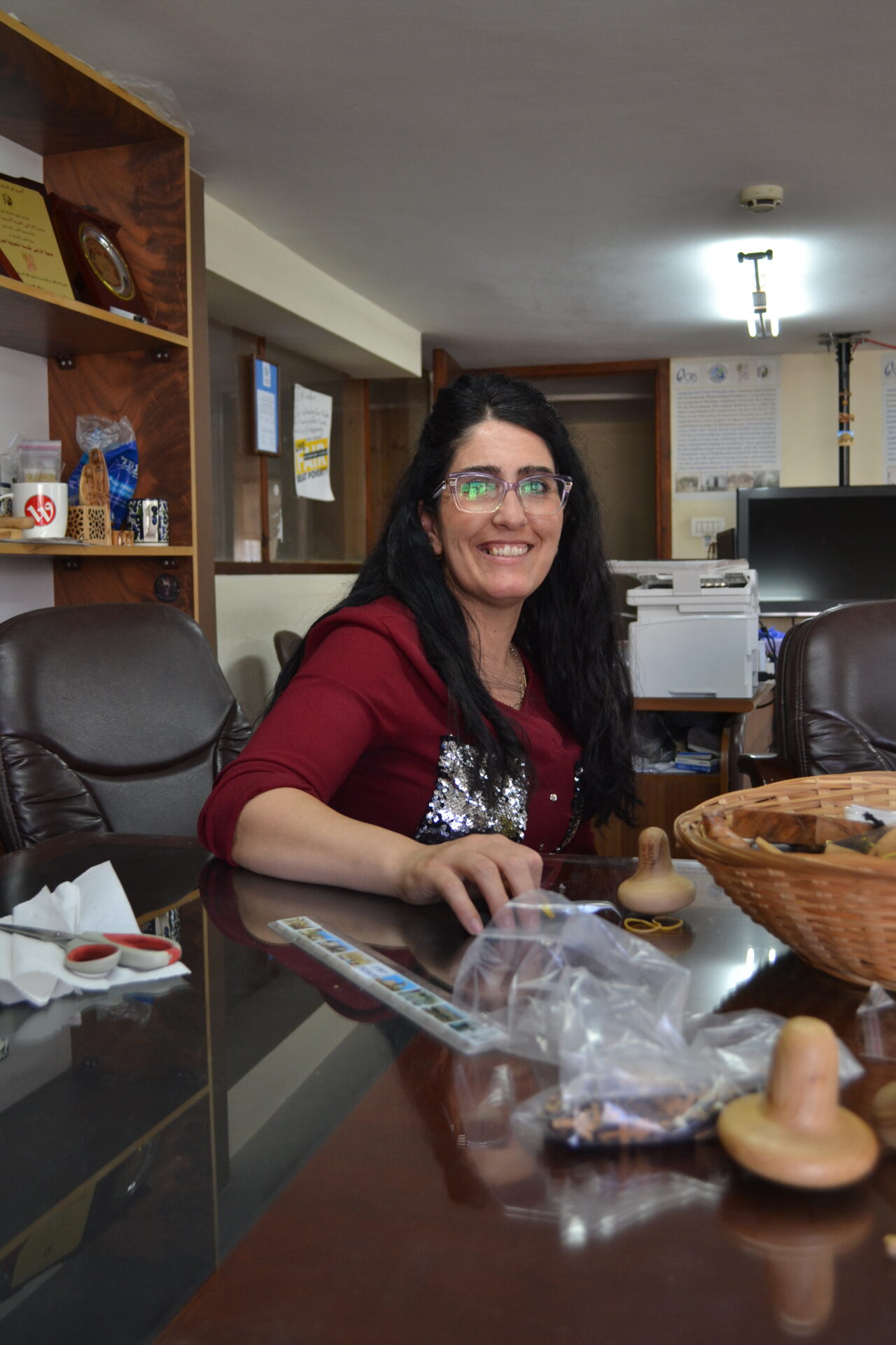 Vår organisation startades för att hjälpa konsthantverkarna på Västbanken att samarbeta och för att de skulle kunna transportera sina varor till Jerusalem. Nu har vi nästan bara exportförsäljning, och vi skickar allt genom en israelisk agent eftersom man måste ha israeliska identitetshandlingar för att kunna skicka saker utomlands. Ändå kan lådor fastna i två månader på en flygplats och sedan komma tillbaka med sprucken bubbelplast. Vi undrar om de hade blivit stående i solen.