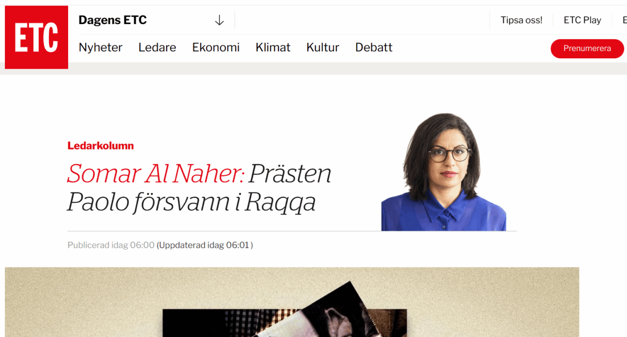 Sohar Al Maher var med och lyssnade när fader Dominik Terstriep och fader Jihad samtalade på Katolskt forum i S:ta Eugenia kyrka i Stockholm. Läs hennes ledare i Dagens ETC här!