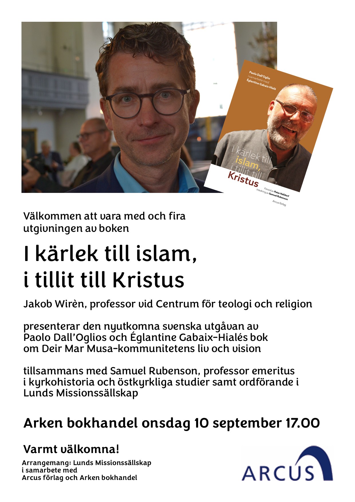 Lunds Missionssällskap bjuder in tillsammans med Arcus förlag och Arken bokhandel.